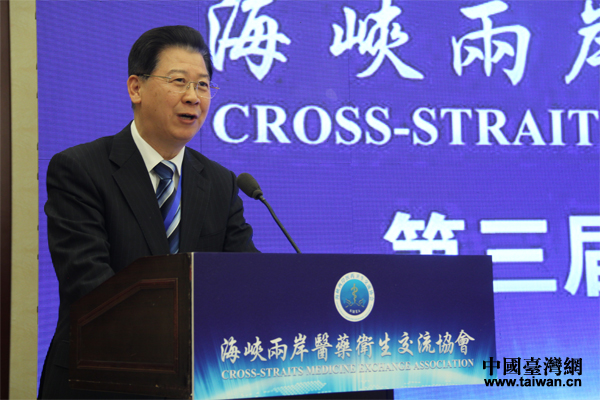 原衛(wèi)生部副部長、中國醫(yī)院協(xié)會會長、海醫(yī)會名譽(yù)會長黃潔夫發(fā)表講話。(中國臺灣網(wǎng) 袁楚 攝)