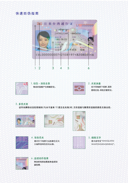 一、新版通行證為參照國(guó)際民航組織(ICAO)DOC9303 TD-1標(biāo)準(zhǔn)設(shè)計(jì)制作的卡式證件,內(nèi)嵌非接觸式集成電路芯片,采用多項(xiàng)物理防偽和數(shù)字安全技術(shù)。正面打印持證人個(gè)人資料以及證件簽發(fā)管理信息,背面打印前往臺(tái)灣簽注等信息并可由證件簽發(fā)機(jī)關(guān)重復(fù)擦寫。新版通行證不再附發(fā)貼紙式簽注。