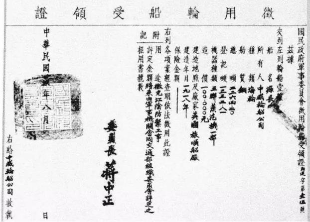 陳順通,人稱“中國船王”。陳順通1895年出生于浙江寧波,14歲闖蕩上海灘,由見習(xí)水手成長為一名技藝嫻熟的船長。一次偶然機會,陳順通救了被軍閥追捕的國民黨元老張靜江。日后,張靜江擔(dān)任了國民政府建設(shè)委員會委員長,陳順通被舉薦為國民船運公司經(jīng)理,為北伐軍暗中運送軍火立下汗馬功勞。1936年10月14日,應(yīng)日本大同海運株式會社要求,陳順通代表中威與“大同”在上海簽訂定期租船合同,將6725噸的“順豐”與5025噸的“新太平”租給“大同”使用。合同規(guī)定,從船舶交付之日起,租期為12個月,合同11月1日生效。為預(yù)防風(fēng)險,“中威”分別將兩輪向日本“興亞”、“三菱”兩家海上保險株式會社投了船體保險。1937年“8·13”事變后,中日戰(zhàn)爭全面爆發(fā),為堵塞航道防御日本大舉進攻,陳順通將“中威”剩余的兩艘貨輪“太平”和“源長”分別自沉于江陰口與寧波灣航道。(圖片來源網(wǎng)絡(luò))