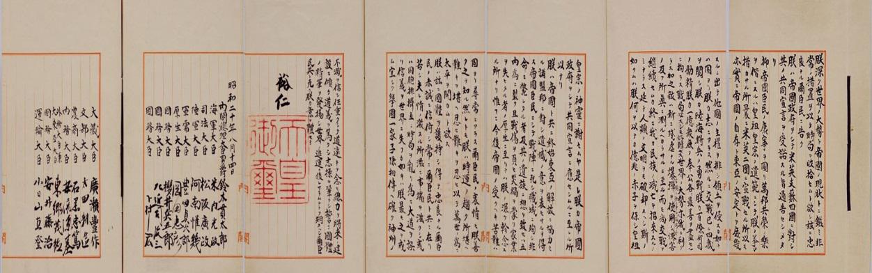 1945年8月15日中午,“社團(tuán)法人臺灣放送協(xié)會”所轄臺北、臺中、臺南、嘉義、花蓮放送局(按,廣播局)與“日本放送協(xié)會(NHK)”同步廣播日本昭和天皇裕仁于8月14日錄制的廣播講話《終戰(zhàn)詔書》(圖一),宣布日本接受《波茨坦宣言》、無條件投降。