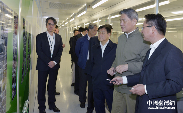 張志軍考察臺(tái)企聯(lián)詠電子科技(西安)有限公司。(陜西省臺(tái)辦供圖)