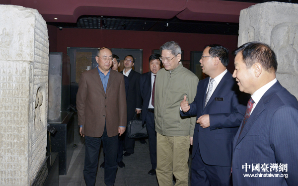 張志軍考察碑林博物館。(陜西省臺(tái)辦供圖)