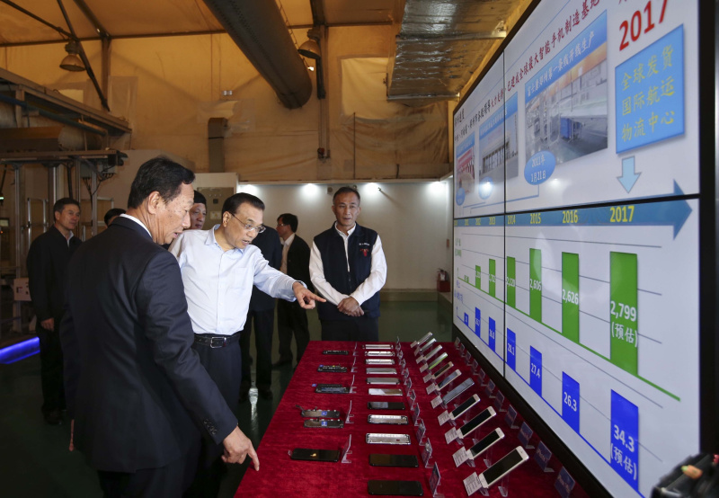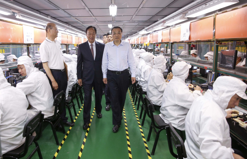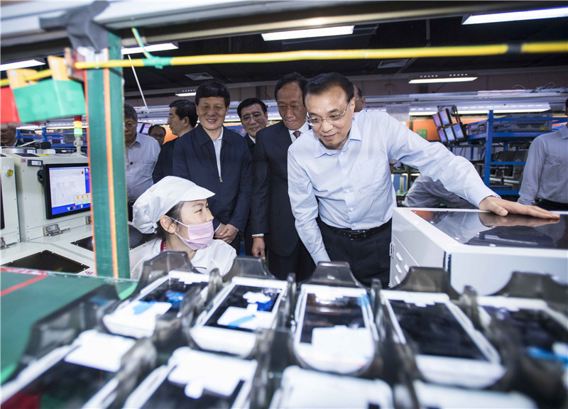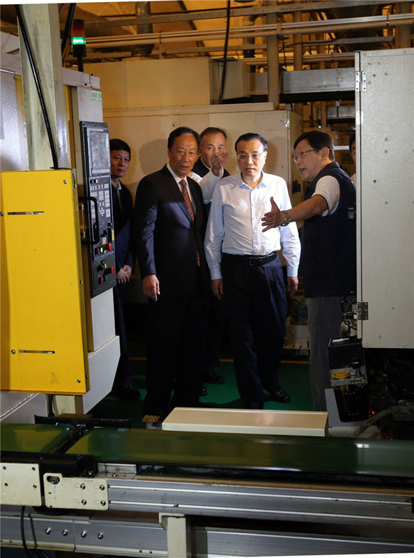 【李克強勉勵富士康員工珍視兩種精神】李克強9日考察鄭州富士康科技園,先來到富士康全球首個智能生產(chǎn)無人車間,隨后走進2000多人的精密組裝測試車間?偫黻P(guān)切詢問工人收入和防護等情況。他最后寄語這里的員工,投身先進制造業(yè)尤其要珍視兩種精神:一是精益求精的工匠精神,二是永不止步的創(chuàng)客精神。