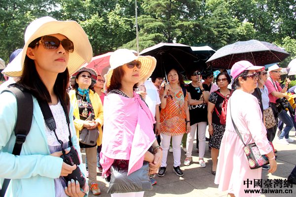 臺(tái)灣新北市宗親文化暨社區(qū)發(fā)展鎮(zhèn)江交流團(tuán)成員在中山陵合影。(中國臺(tái)灣網(wǎng) 李杰 攝)