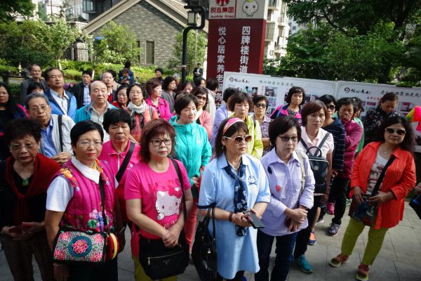 臺灣新北市宗親文化暨社區(qū)發(fā)展交流團(tuán)參觀鎮(zhèn)江市京口區(qū)四牌樓街道虹橋社區(qū)。(鎮(zhèn)江市臺辦 章邦勇 攝)