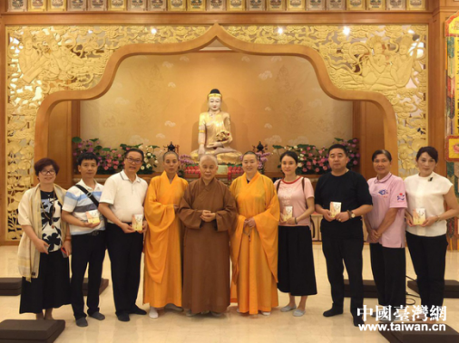 庹純雙一行在佛光山念佛堂體驗佛教文化,圖為堂主與全體成員合影。(中國臺灣網(wǎng)發(fā))