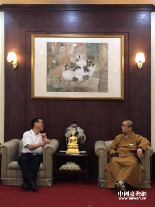 27日21時,慧屏法師百忙之中再次來到參訪團住地接見了參訪團全體成員,并對本次參訪作出了高度評價。他表示,雙方以后要多加往來,促進兩岸和平發(fā)展和更加廣泛的文化交流。(完)