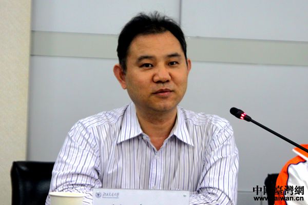 北京交通大學(xué)副校長(zhǎng)關(guān)忠良向來訪的臺(tái)灣大學(xué)生介紹學(xué)校概況。(中國臺(tái)灣網(wǎng) 李杰 攝)