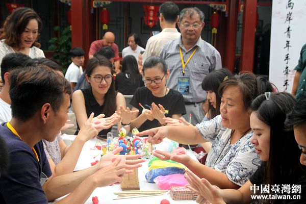 “中華兒女科技體驗(yàn)營”參訪北京市,與非物質(zhì)文化遺產(chǎn)傳承人一起捏面人。(中國臺(tái)灣網(wǎng) 李杰 攝)