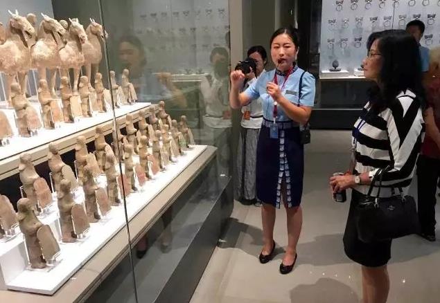 秦慧珠(右)參觀齊文化館。(圖片來(lái)源:魯臺(tái)之窗)