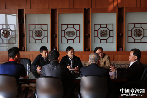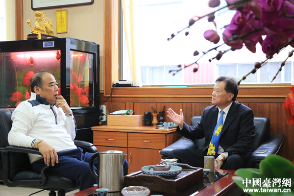 羅文德在公司總經(jīng)理蔡再展的辦公室內(nèi),邊品茶邊談公司經(jīng)營等事宜。(中國臺灣網(wǎng) 扶海濤 攝)