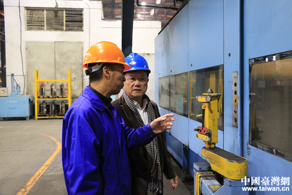 羅文德在工廠負責(zé)人的陪同下,視察廠內(nèi)生產(chǎn)情況。(中國臺灣網(wǎng) 扶海濤 攝)