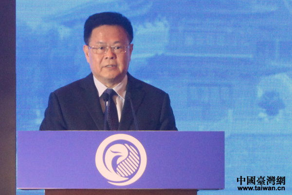 中共中央臺辦、國務(wù)院臺辦副主任鄭柵潔出席論壇并致辭。(中國臺灣網(wǎng) 王怡然 攝)