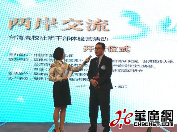 華廣網(wǎng)11月11日訊(記者 孟斌)今天上午,“兩岸交流30年”臺灣高校社團(tuán)干部體驗營活動在廈門正式拉開序幕。此次活動以“深化兩岸交流,共享發(fā)展機(jī)遇”為主題,來自臺灣世新大學(xué)、銘傳大學(xué)等10所臺灣院校的20余位社團(tuán)骨干將通過實地走訪和互動交流,親身體驗和感受兩岸交流30年來大陸經(jīng)濟(jì)社會發(fā)展成果,尋求未來發(fā)展機(jī)會。中國華藝廣播公司董事長邱雨、國務(wù)院臺灣事務(wù)辦公室交流局副調(diào)研員張志剛、福建省文化廳副廳長林守欽、福建省人民政府臺灣事務(wù)辦公室副主任宋志強(qiáng)、福建省閩臺文化交流中心主任黃星、廈門市人民政府臺灣事務(wù)辦公室副主任林奕田、廈門市臺商協(xié)會會長吳家瑩、臺灣傳統(tǒng)倫理文化發(fā)展協(xié)會理事長陳孝忠、廈門大學(xué)臺灣研究院院長李鵬等參加了啟動儀式。