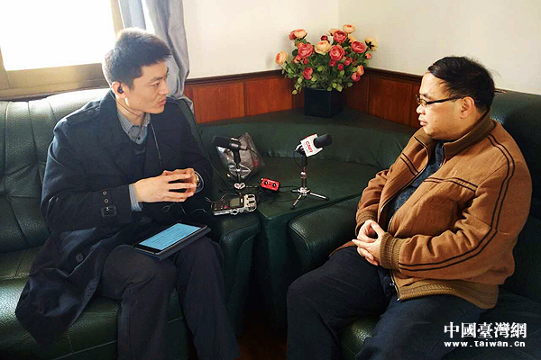 廈門大學(xué)臺灣研究院政治研究所所長張文生認(rèn)為,雖然兩岸隔絕了將近四十年,但是兩岸天然的血緣聯(lián)系從來就沒有斷過,隨著返鄉(xiāng)探親的開啟,民間交流向多元化、各個領(lǐng)域開拓。圖為張文生所長(右)接受記者穆亮龍(左)采訪。