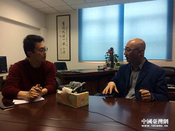 圖為閩南師范大學藝術學院副院長鄭玉玲(右)接受記者穆亮龍(左)采訪。