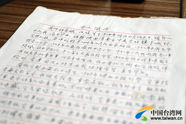 種志斌為入黨所寫的《個人簡介》。(中國臺灣網(wǎng) 扶海濤 翻攝)