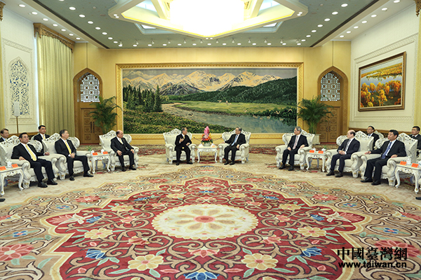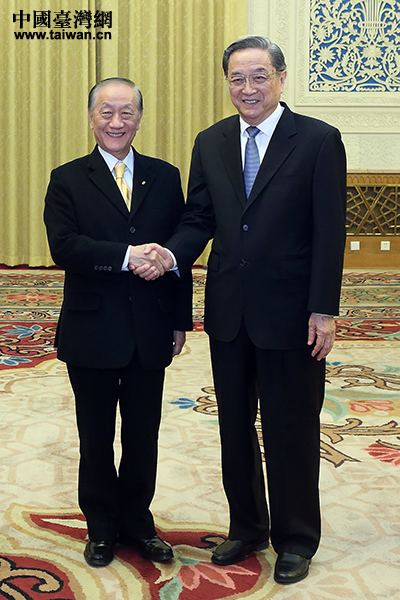 12月11日,全國政協(xié)主席俞正聲在北京人民大會(huì)堂會(huì)見新黨主席郁慕明率領(lǐng)的新黨大陸訪問團(tuán)。(中國臺(tái)灣網(wǎng) 于斯文 攝)