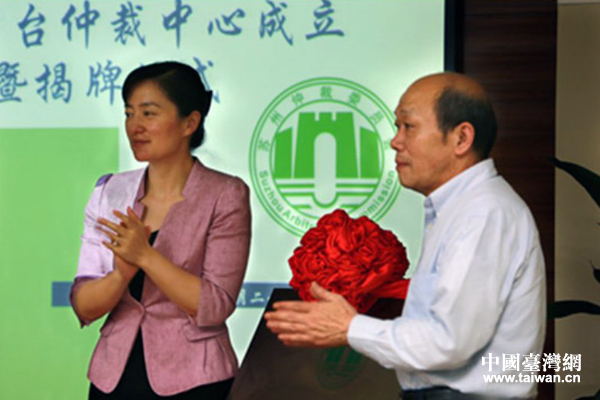 2013年5月29日,蘇州涉臺仲裁中心舉行成立揭牌儀式。(中國臺灣網(wǎng)發(fā) 蘇州涉臺仲裁中心供圖)