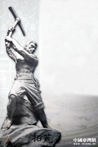 天福集團“唐山過臺灣”石雕園內(nèi)的“拓荒”雕像。(圖片翻攝自天福集團宣傳冊)