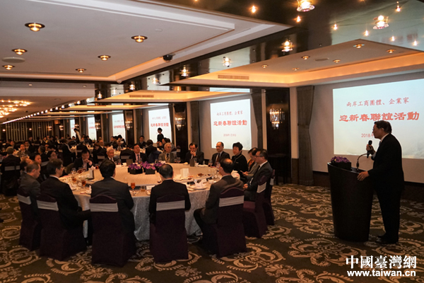 中國臺灣網(wǎng)1月22日訊 日前,由中國機(jī)電商會臺北辦事處、中國銀行臺北分行和臺灣三三會、臺灣工商團(tuán)體秘書長聯(lián)誼會共同主辦的“兩岸工商團(tuán)體、企業(yè)家迎新春聯(lián)誼活動”在臺北舉行。包括海貿(mào)會臺北辦事處、海旅會臺北辦事處、中國國際航空公司臺灣分公司等大陸在臺機(jī)構(gòu)、企業(yè)負(fù)責(zé)人和臺灣工業(yè)總會、商業(yè)總會等工商團(tuán)體負(fù)責(zé)人及企業(yè)家代表近百人出席了聯(lián)誼活動。