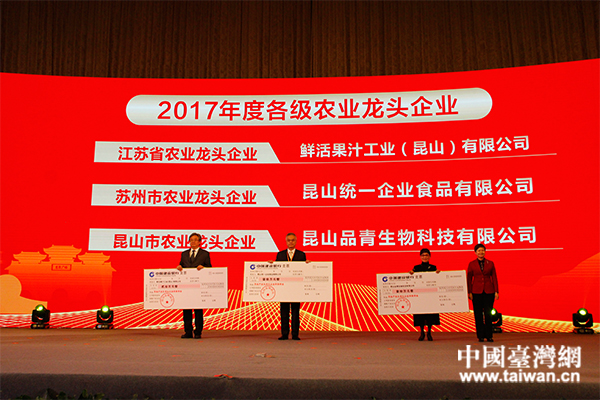 昆山市政府為2017年度各級農業(yè)龍頭企業(yè)兌現(xiàn)獎勵資金。(中國臺灣網(wǎng) 汪明珠 攝)