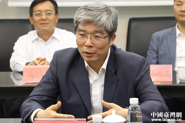 中共中央臺(tái)辦、國(guó)務(wù)院臺(tái)辦主任助理周寧與宿遷臺(tái)商代表座談。(中國(guó)臺(tái)灣網(wǎng) 張亞靜 攝)