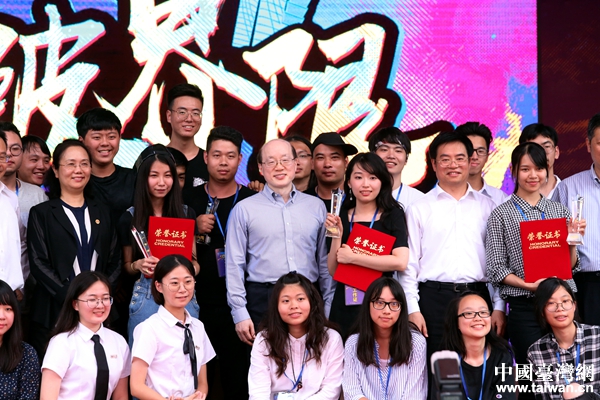 中共中央臺辦、國務(wù)院臺辦主任劉結(jié)一與參賽團(tuán)隊(duì)合影留念。(中國臺灣網(wǎng) 尹賽楠 攝)