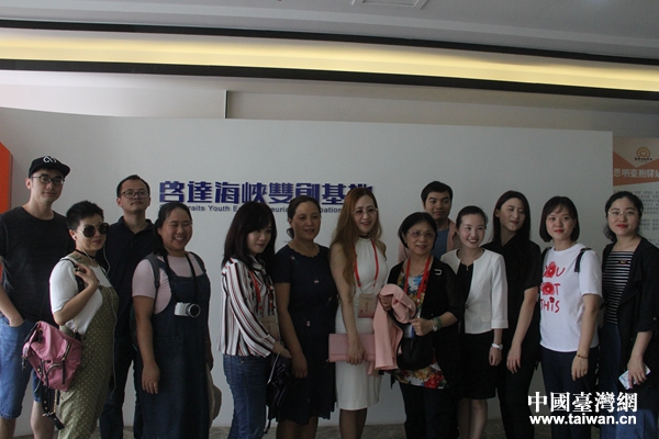 兩岸學(xué)者在啟達(dá)海峽雙創(chuàng)基地合影留念。(中國臺灣網(wǎng) 汪明珠 攝)