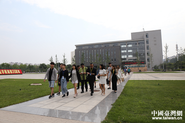 參訪交流團(tuán)行走在山西傳媒學(xué)院校園。(中國(guó)臺(tái)灣網(wǎng) 袁楚 攝)