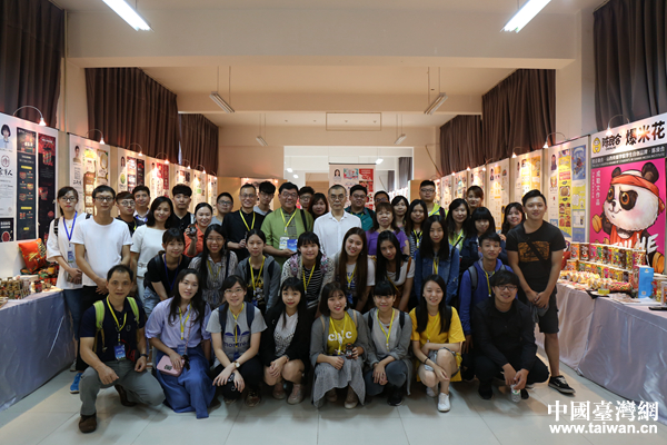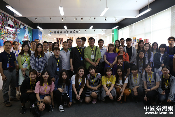 山傳文化科技園內(nèi)合影留念。(中國(guó)臺(tái)灣網(wǎng) 袁楚 攝)