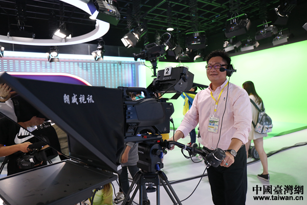 臺(tái)灣大學(xué)生在山西傳媒學(xué)院視頻演播室進(jìn)行體驗(yàn)。(中國(guó)臺(tái)灣網(wǎng) 袁楚 攝)