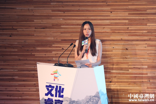 首屆兩岸網(wǎng)絡文學大賽獲獎臺灣青年作者納蘭采桑發(fā)言。(中國臺灣網(wǎng) 李奕均 攝)