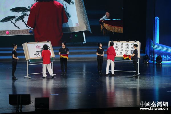浙江省殘疾人藝術團陳偉強、丁京華表演無臂書法、繪畫。(中國臺灣網(wǎng) 李奕均 攝)