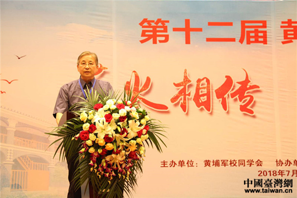 開幕式上,臺灣中國統(tǒng)一聯盟主席戚嘉林做主題發(fā)言。(圖片來源:黃埔軍校同學會)