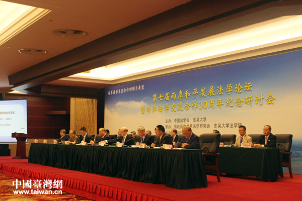 中國臺灣網(wǎng)7月19日北京訊(記者 張潔)7月19日,主題為“兩岸法學(xué)交流合作回顧與展望”的第七屆兩岸和平發(fā)展法學(xué)論壇暨兩岸法學(xué)交流合作30周年紀(jì)念研討會在北京開幕。中國法學(xué)會會長王樂泉,中共中央臺辦、國務(wù)院臺辦主任劉結(jié)一出席開幕式并講話。中國法學(xué)會黨組書記、常務(wù)副會長陳冀平主持開幕式。臺灣東吳大學(xué)校長潘維大、臺灣法曹協(xié)會理事長蘇永欽在開幕式上致辭。