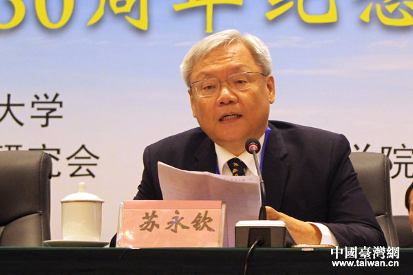 臺灣法曹協(xié)會理事長蘇永欽在開幕式上致辭。(中國臺灣網(wǎng) 張潔 攝)