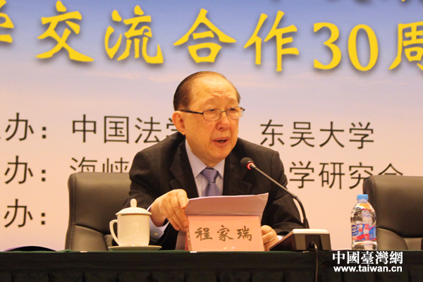 臺灣東吳大學(xué)法學(xué)院教授、前院長程家瑞進行主題發(fā)言。(中國臺灣網(wǎng) 張潔 攝)