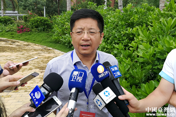 國務院臺灣事務辦公室新聞局局長、聯(lián)合采訪團團長馬曉光接受采訪。(中國臺灣網(wǎng) 尹賽楠 攝)