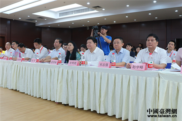 國務(wù)院臺灣事務(wù)辦公室副主任龍明彪、國務(wù)院臺灣事務(wù)辦公室交流局副局長董碧幽、福建省臺辦副主任宋志強、福州市副市長杭東等領(lǐng)導(dǎo)出席論壇。(中國臺灣網(wǎng) 郜利敏 攝)