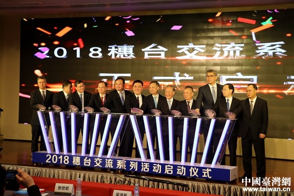參會領(lǐng)導(dǎo)嘉賓共同啟動“2018穗臺交流系列活動”。(中國臺灣網(wǎng) 李奕均 攝)