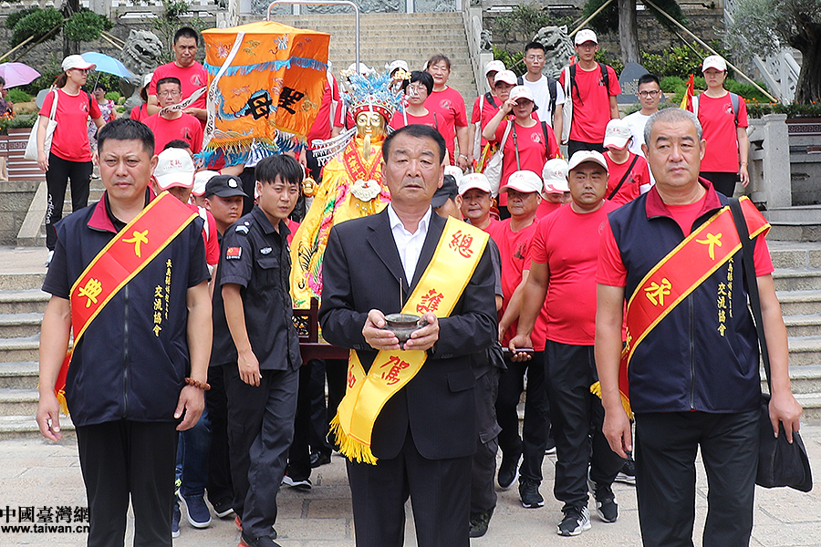 中國臺灣網(wǎng)9月12日臺北訊。ㄓ浾 何建峰)山東長島顯應(yīng)宮千年媽祖金身日前結(jié)束了在媽祖故鄉(xiāng)——福建湄洲的省親活動(dòng),12日乘坐輪渡抵達(dá)臺北,開啟了為期13天的赴臺結(jié)緣會親活動(dòng)。