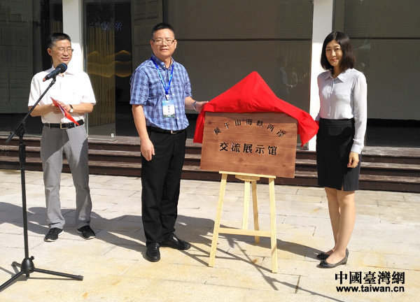 《兩岸關(guān)系》雜志社社長(zhǎng)助理李穎莉(右)與浙江省臺(tái)辦交流處處長(zhǎng)黃曉云(左)為莫干山海岸兩岸交流展示館揭牌。(中國(guó)臺(tái)灣網(wǎng) 王文英 攝)
