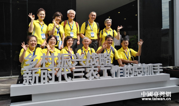 臺(tái)灣同胞在莫干山鄉(xiāng)村振興VR館前開(kāi)心合影。(中國(guó)臺(tái)灣網(wǎng) 王文英 攝)