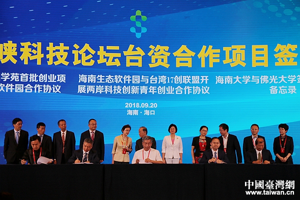 2018海峽科技論壇現(xiàn)場(chǎng)簽約5個(gè)臺(tái)資合作項(xiàng)目。(中國(guó)臺(tái)灣網(wǎng) 張亞靜 攝)