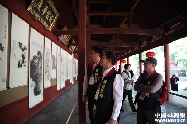 來自臺灣的伙伴們正在進行書畫展參觀(中國臺灣網(wǎng) 許晗 攝)