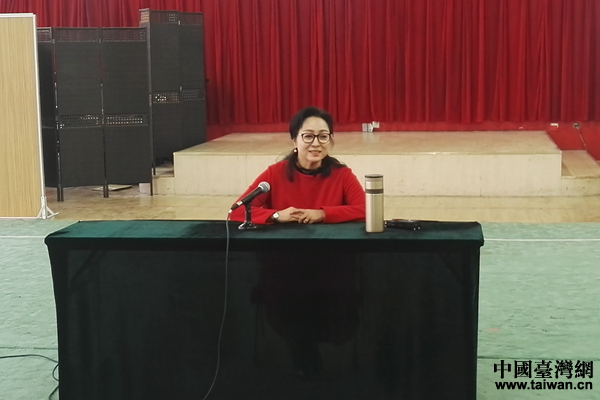 北方昆劇院院長(zhǎng)楊鳳一與報(bào)道團(tuán)進(jìn)行交流。(中國(guó)臺(tái)灣網(wǎng) 陳佳慧 攝)