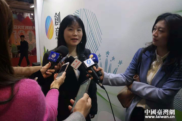 臺(tái)灣文創(chuàng)館負(fù)責(zé)人葉吉凌接受媒體采訪。(中國臺(tái)灣網(wǎng) 王怡然 攝)