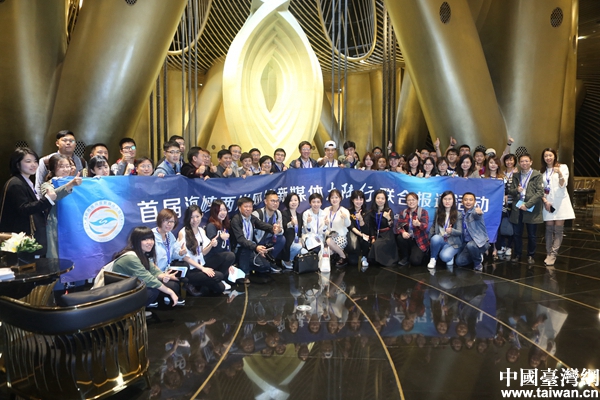 兩岸媒體人在上海中心大廈內(nèi)合影。(中國臺灣網(wǎng) 陳佳慧 攝)