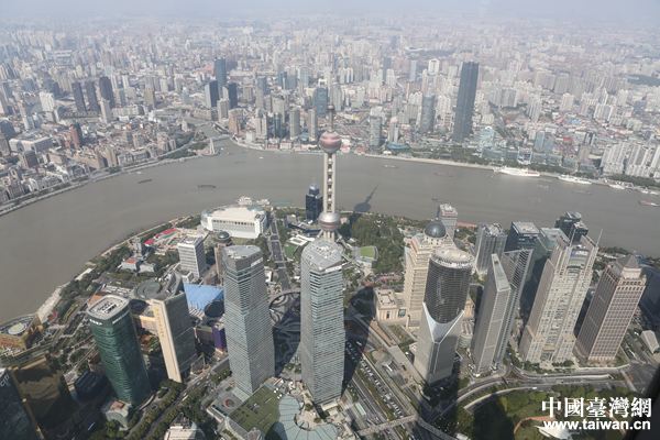 上海中心大廈頂層一覽外灘景色。(中國臺灣網(wǎng) 陳佳慧 攝)